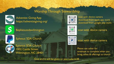 Welcome to Ephesus Seventh-day Adventist Church in Wilmington, NC. We're glad you chose to visit our website today. We are a Christian community and would love to have you join our family. To learn more about what we believe you can visit our About Us page. Please join us for Bible study, worship, and prayer. Thanks for stopping by. May God's richest blessings rest upon you and your family.